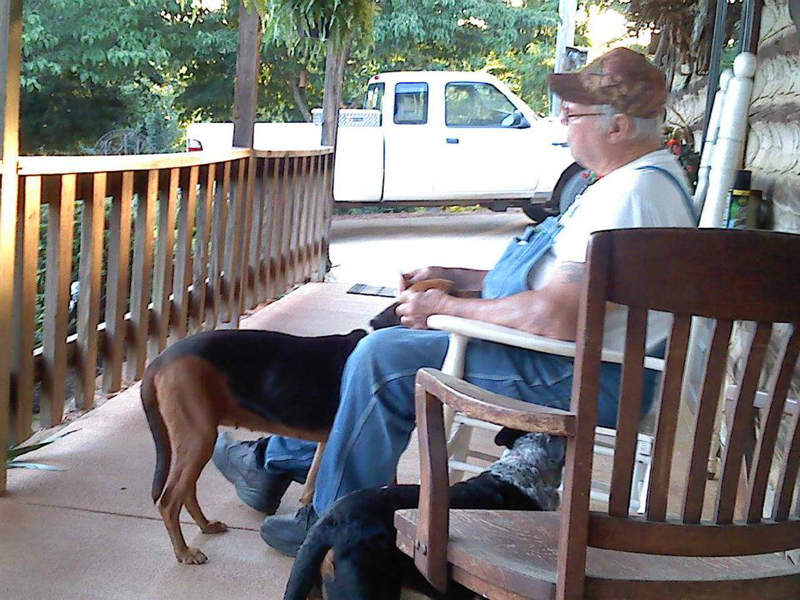 Jerry Rushing on his Porch |